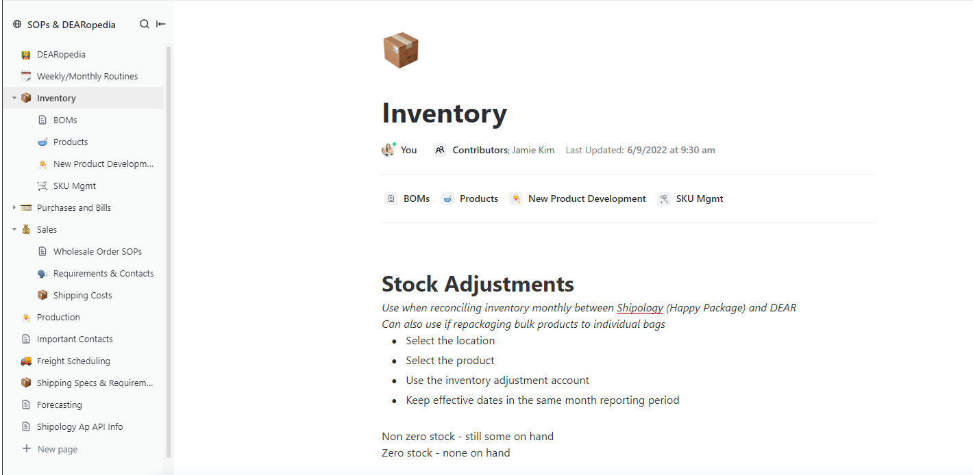 To centralize key information, I created the company’s first SOPs around internal processes, freight specs, vendor requirements, and wholesale account customer requirements.